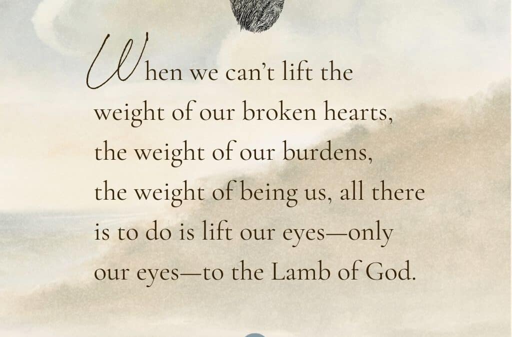 When we can’t lift the weight of our broken hearts, the weight of our burdens, the weight of being us, all there is to do is lift our eyes—only our eyes—to the Lamb of God.