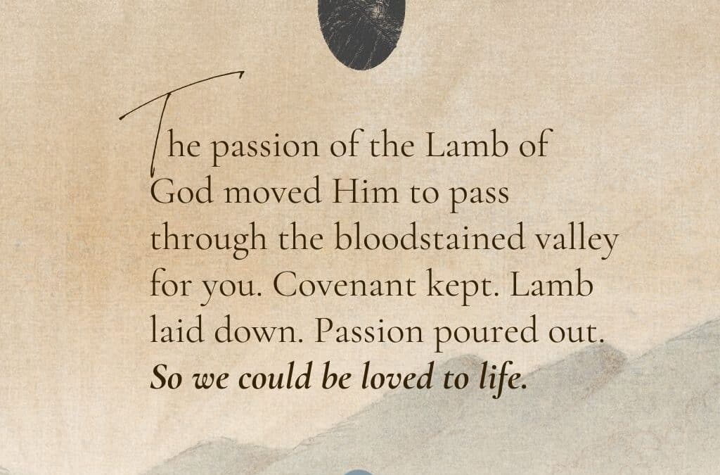 “The passion of the Lamb of God moved Him to pass through the bloodstained valley for you. Covenant kept. Lamb laid down. Passion poured out. So we could be loved to life.”